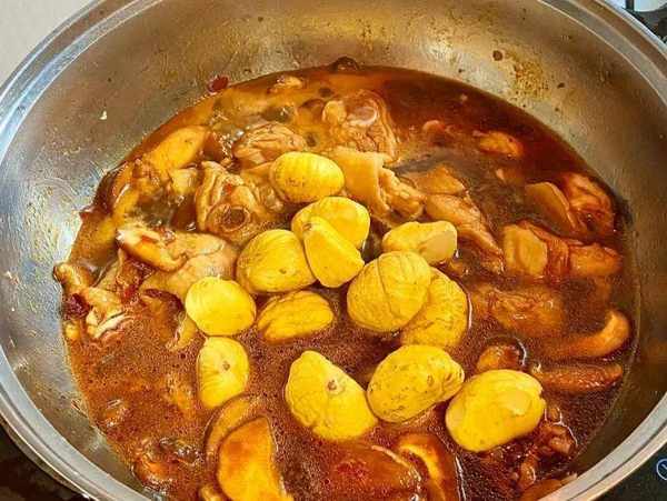 食材:栗子,土鸡,生抽,老抽,料酒,白糖,冬菇,葱姜蒜