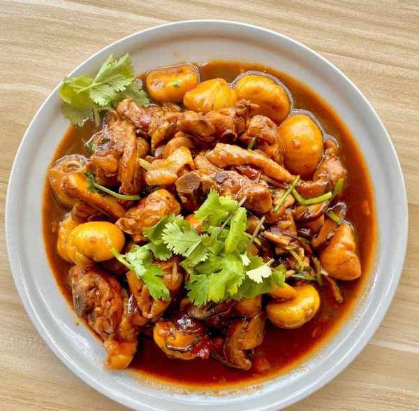 搭配上农家土鸡,运用烹饪技艺制作而成。土鸡肉鲜香酥口,栗子清甜,令人欲罢不能。