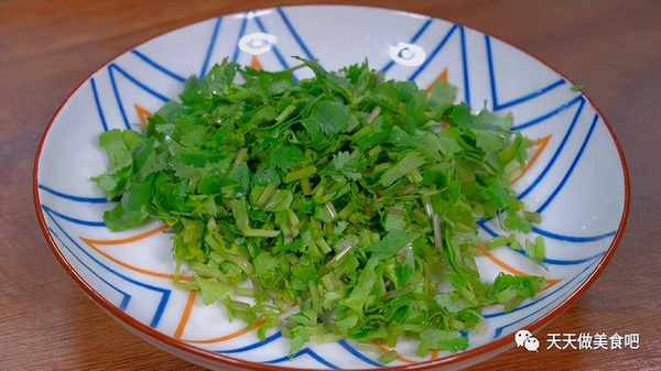 2.青线椒去蒂切成圈、小米椒也切圈、香菜去掉根部切末、大蒜切片,全部切好后装入盘中备用。