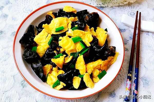 锅中再放入少许油,放入葱白炒香,下入木耳,大火翻炒至8成熟后,倒入鸡蛋,加入食盐和鸡精,大火翻炒均匀后撒上葱花即可出锅。