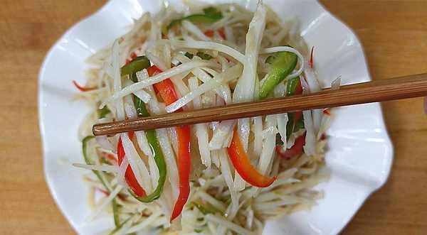 (5)白醋要出锅的时候放,这样可以防止白醋挥发,影响味道,同时口感更加脆爽。
