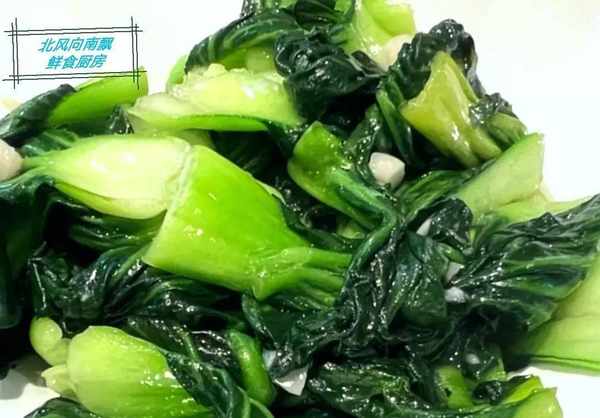 1 小青菜洗净控干水分备用,另起锅烧油,下蒜末爆香。