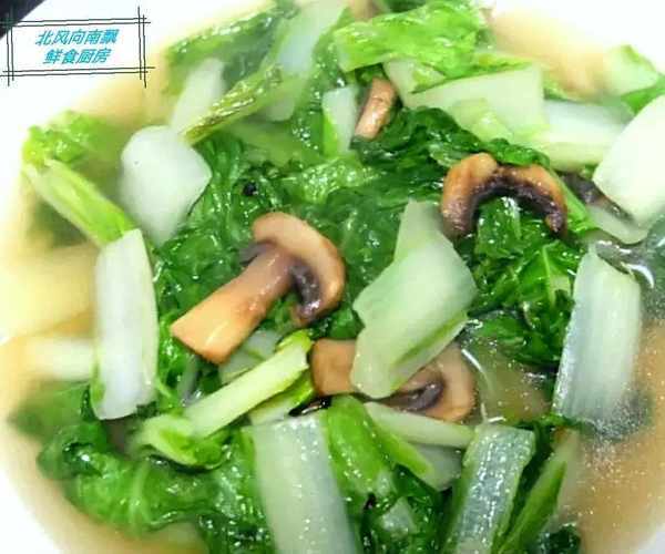 所需食材:杭白菜,蘑菇,蒜,盐,鸡精,生抽,蚝油