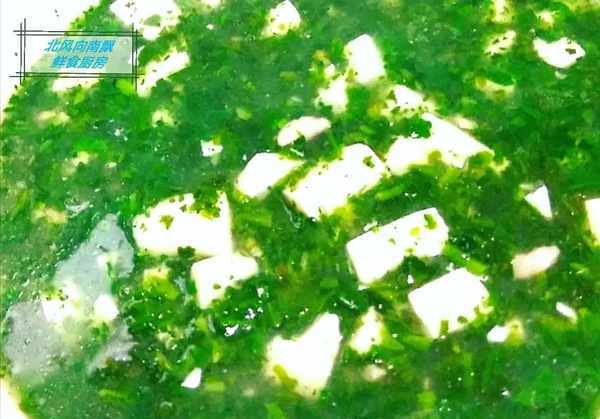 1 荠菜洗净切成小沫,豆腐洗净切成小块备用。