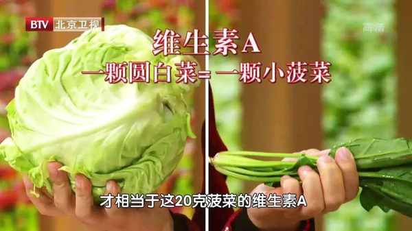 一棵圆白菜大概有2斤,它的维生素A的含量却比较低,才相当于一棵小菠菜。