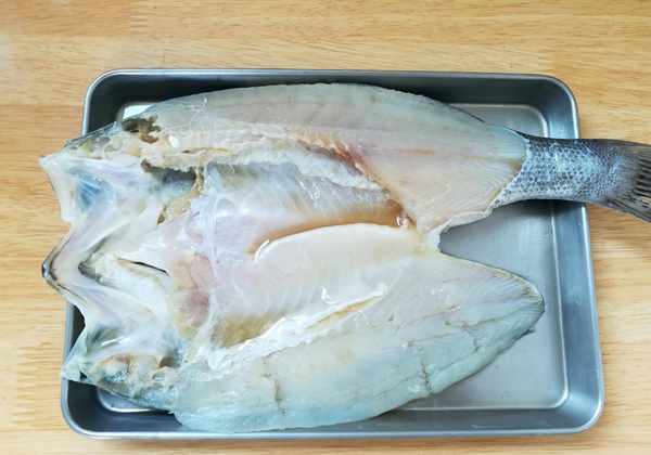 我用的是清理了鱼鳞、鱼鳃和内脏的白蕉海鲈鱼,它是广东珠海的地标产品,肉厚刺少,入口嫩滑清甜,鱼腥味小,除了用来清蒸,做烤鱼也非常好吃。