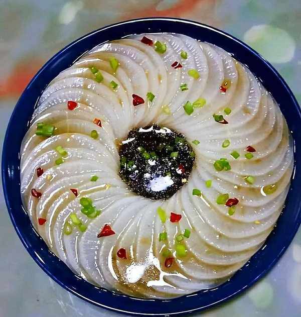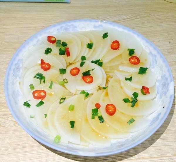 做法:1白萝卜去皮,清洗,然后切片,放在盘子里