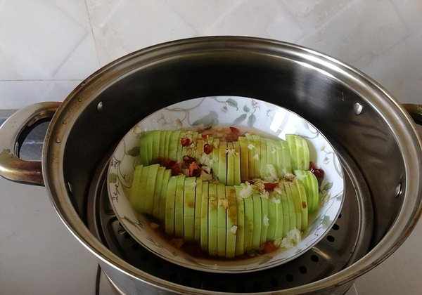 4锅里烧水,大火来蒸南瓜大枣百合,时间大概15分钟即可