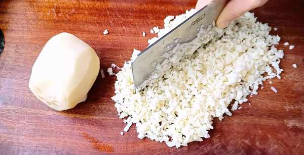 2,莲藕去皮剁碎。