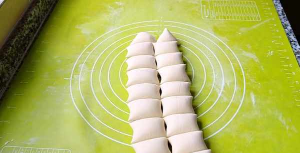 5,揉搓排气,搓成长条,均匀分块。