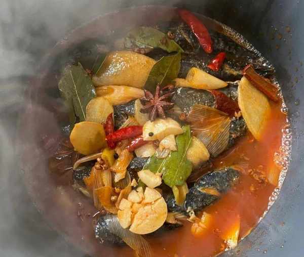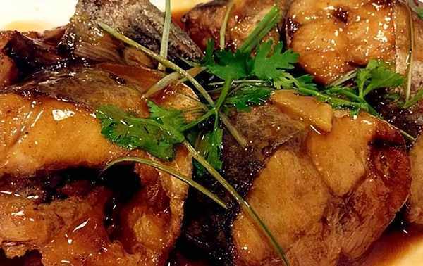 第五步,把煎好的鱼放入锅中,焖煮30分钟。出锅时加入少许水淀粉,让汤汁更浓稠一些,能挂在鱼上。