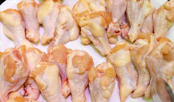2、锅中添入适量的清水,把翅根用刀剁成两半放入锅中。加入葱姜片和料酒去除腥味。开锅后用漏勺把鸡翅根取出来放入盆中用清水洗干净血末和杂质。鸡肉中含有丰富的胶原蛋白和各种微量元素,也是一种高蛋白低脂肪的美味食材,经常食用鸡肉不仅可以强身健体还可以美容养颜。