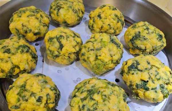 现在的人们大鱼大肉吃的多了,偶尔可以吃点粗粮调理一下肠胃,荠菜团子就是个不错的选择。焯好水的荠菜切碎,加进三分之二的玉米面和三分之一的面粉,打入一个鸡蛋,少量白糖。酵母提前用温水调开然后加进去。之后温水和面,把面和成不粘手的面团后,盖上笼布醒发两个小时。醒好的面揉成大小均匀的团子,冷水上锅蒸,水开后蒸二十五分钟,松软可口的荠菜团子就做好了。