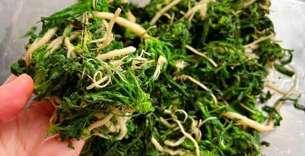 挖回来的荠菜,需要去掉黄叶、烂叶,把杂草之类的清理干净,这一项是个大工程,需要极大的耐心。然后用清水清洗,野菜嘛,泥土会比较多,所以也要有耐心的清洗很多遍才可能清洗干净。