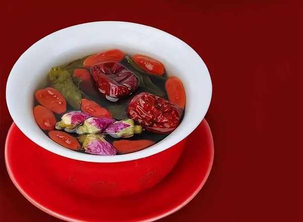 三炮台的原料主要有春茶、小枣、枸杞、玫瑰、桂圆、葡萄干、冰糖、荔枝干等组成。这几样东西在选品的时候也是比较讲究的,如果只是简单的组合在一起,也不会成为茶中佳品。