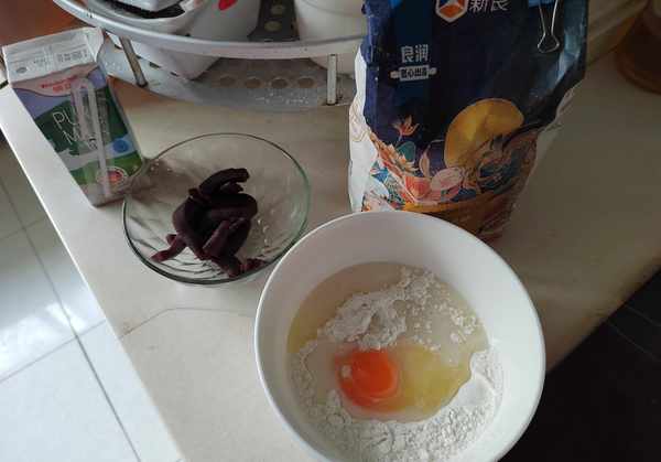 面粉:100g,鸡蛋:1个,纯牛奶:适量,豆沙馅:适量。