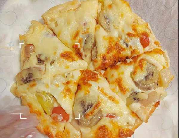 烤出来的披萨底部是软软的,外圈是有些脆脆的。做法简单又好吃