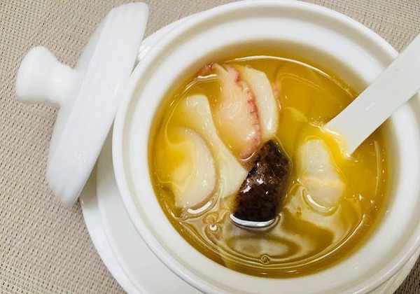 1、螺肉和干鲍鱼提前三天水发,做之前用高汤加料酒蒸六个小时。
