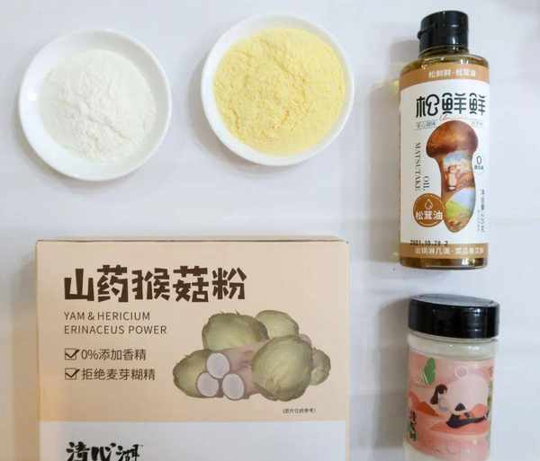 •松茸油适量、零卡糖30g、山药猴菇粉1袋