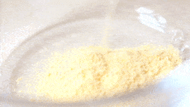 1.食材准备:大碗里放玉米面粉200g,加入少许零卡糖,加入温水搅拌均匀