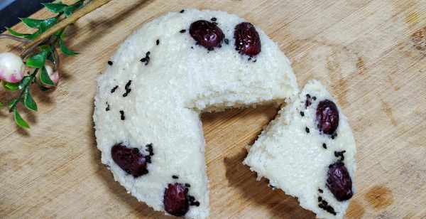 制作醪糟米糕的时候,米浆要多打几次,细腻的口感更佳,同时倒入容器中要6分满,防止发酵和蒸制的时候溢出锅。