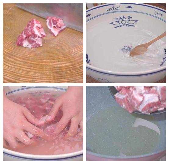 2、泡好之后,水中有很多的脏东西,即可捞出,再一次清洗牛肉,然后控干水分。