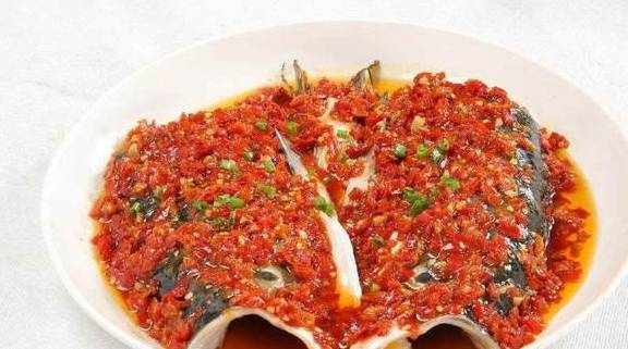 腌制完成后,将提前准备好的剁椒盖在鱼头上。在锅中加入适量的水,开大火,待水有热气时,放入鱼头,进行蒸制。大约二十分钟左右即可。如果不放心,可以看一下鱼的眼睛,如果鱼眼突起来,说明已经熟了。然后关掉火,不要打开锅盖,继续焖上五分钟。五分钟过后,即可盛出鱼头,在锅里再加热一些油,将热油淋在剁椒上,进而进入到鱼头中去。