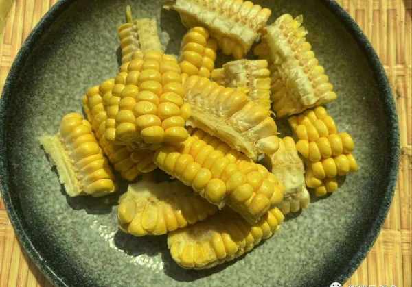 2.玉米放在案板上用刀给它切小块,切好后放一旁边。土豆可以切成滚刀状,我们要下锅炖煮,切大块没有关系,切好放一旁;