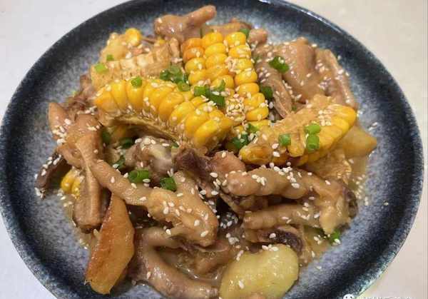 鸡爪,鸡翅,玉米,土豆,食盐,蚝油,酱油,食用油,芝麻,小葱,生姜