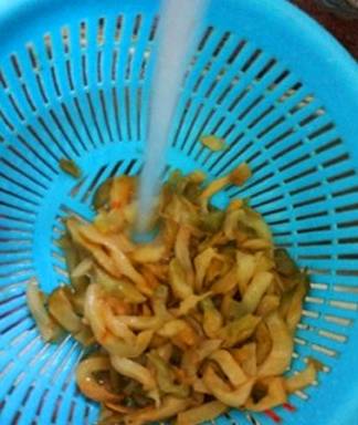 榨菜用清水洗一下,我用的是包装的榨菜,直接蒸怕它咸所以洗了一下