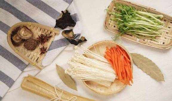豆苗金针菇胡萝卜香菇木耳油豆皮