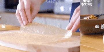 我用的是市场买的油豆皮,非常薄,不需要泡水,直接卷就成。