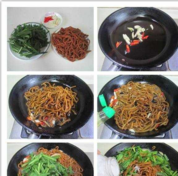 制作:1.准备好原材料;2.热锅凉油,放入蒜丝和红椒进去翻炒;3.再放入千叶豆腐丝进去翻炒;4.烹入适量的生抽,翻炒几下;5.再加入韭菜段大火快炒;6.翻炒至韭菜变色后加入适量的盐翻炒均匀即可。