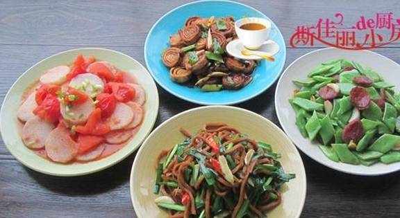 春季大家都忙着减肥,家人一致要求少吃肉,清淡一些,这正好中我的下怀,做饭就变得很简单,一般晚餐就做几道素炒菜打发他们了,真的是好不容易能偷懒一下。今天的菜就很简单,腊肠炒刀豆、香辣豆豉霉千张、西红柿炒山药、韭菜炒千叶豆腐丝,虽然都偏素些,但两种豆制品,植物蛋白也不少,营养也够了,简单快手,很省时间,吃饱了正好去运动。