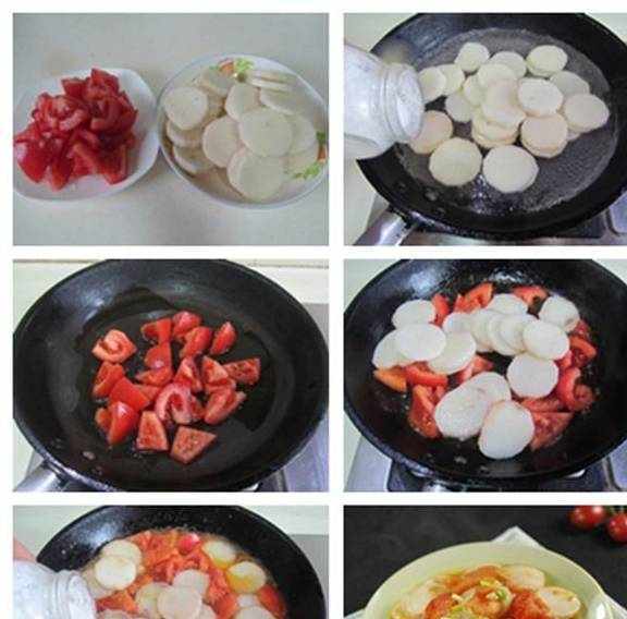 制作:1.准备好材料;2.烧锅开水,加入点盐,将山药放入水中焯煮一分钟后捞出;3.热锅凉油,放入西红柿进去翻炒;4.翻炒至西红柿微微出汁后加入山药进去翻炒,再可加入少许水;5.最后加入盐调味;6.盛入盘中,表面撒上小葱末。