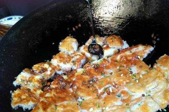 下午闲逛路过一个小巷子,看到一家店面的年轻小伙子,一顿操作猛如虎,顿时被他跟他锅里的东西给吸引住了,走近一看只见小伙轻轻的揭起了一个看似面皮状的“东西”,然后呼地一下,把整个来了个180度大翻转,如纸一般薄的小吃整个完好无损的在锅里调了个面,稳稳落在锅面上。如此大的一张居然一点破损都没有!动作非常的快,虽然中途有些小碎末飞出……