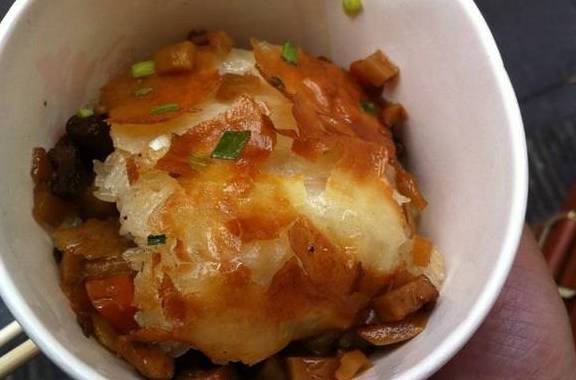 小编赶紧买了一碗,外焦里嫩的感觉软味道还不错,只是这一碗的份量也太少了点,不吃个20块钱的根本吃不饱啊……小编是不是应该减肥了,不然都快养不活自己了。