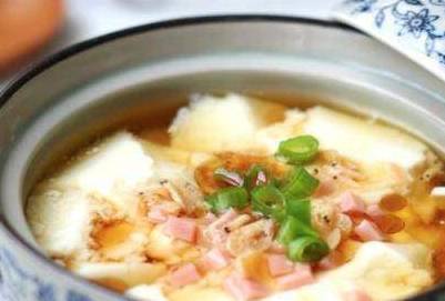 4.将豆腐脑盛入碗中,倒入酱油,放入自己喜欢的虾皮、香葱、火腿粒等等,倒入香油即可试用。