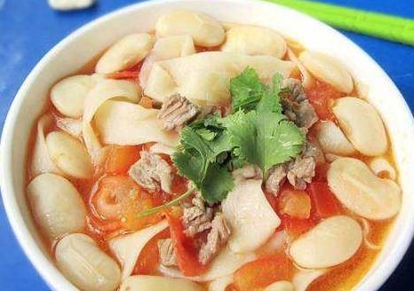 面粉、白豆、羊肉、西红柿、植物油、盐、羊肉汤、香菜、胡椒粉、花椒粒、洋葱、鸡精、虾酱