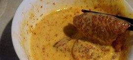 鸡蛋和面粉放在一个碗中调成面糊,小美忘记量他们的比例了。面糊要稍微粘稠一点,这样好裹在猪排上,把腌制好的猪排放入面糊中。