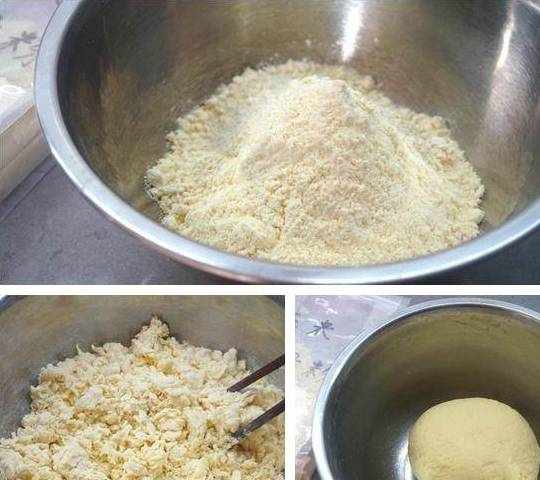 1.玉米饺子粉入盆中,如果没有这种专用的粉,可以用细细的玉米面加1.5-2.5倍的小麦面粉来配一下,具体的比例可以尝试后再调整;