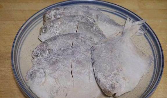 腌制的时候,部分葱段姜片还可以放入鱼腹内,这样除腥的效果更好。平鱼在两面划上几道,更易入味。