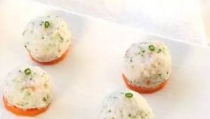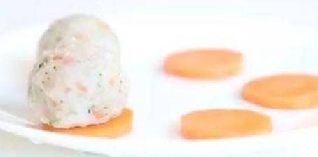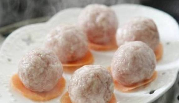 10、将肉泥搓成圆球,摆放在胡萝卜片上11、上蒸锅,中火蒸15分钟