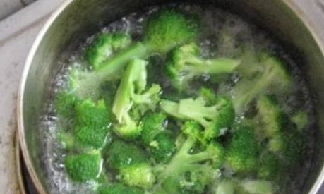 5、西兰花放入沸水中,焯水1分钟6、西兰花切碎
