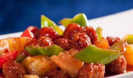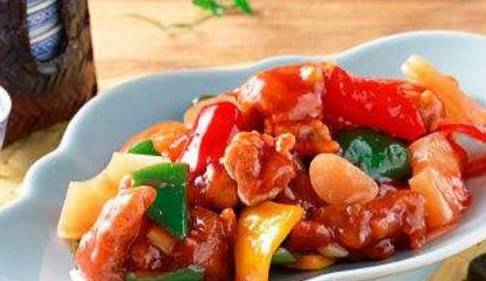 咕噜肉含有丰富的优质蛋白质和必需的脂肪酸,并提供血红素(有机铁)和促进铁吸收的半胱氨酸,能改善缺铁性贫血;具有补肾养血,滋阴润燥的功效;淀粉(蚕豆):蚕豆中含有丰富的钙、锌、锰、磷脂等,是大脑和神经组织的重要组成成分,并含有丰富的胆碱,有增加记忆力和健脑作用。菠萝中所含的蛋白质分解酵素有分解蛋白质及助消化的功能,对于长期食用过多肉类及油腻食物的人来说,是一种很合适的饭后水果。另外,菠萝的诱人香味则是来自其成分中的酸丁酯,具有刺激唾液分泌及促进食欲的功效。