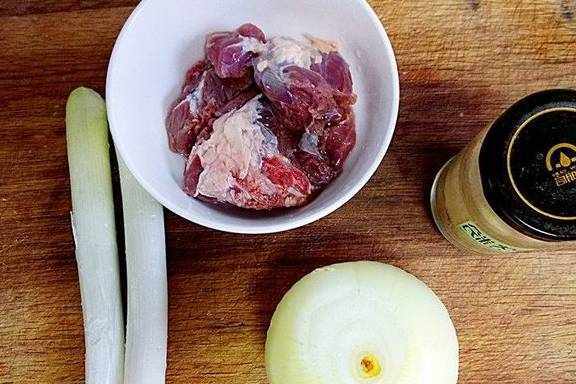 所需食材:羊肉、洋葱、大葱、生姜、孜然粉、料酒、酱油、食用油。