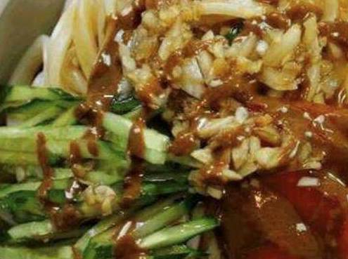 所谓麻汁拌面,重点就是这个麻汁,麻汁是由芝麻酱做成的,古来就是将芝麻炒熟后,用石磨研磨成粘稠状,加入饭食中。