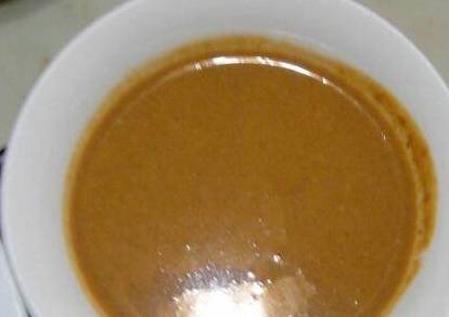 2、准备麻酱,准备一只碗,将芝麻酱倒入,再加入少许生抽、醋、两三滴香油、蒜末、适量的盐和鸡精、些许温水。