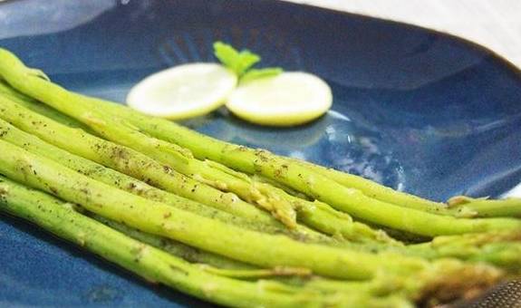 芦笋200克、柠檬1个、橄榄油10毫升、黑胡椒粉少许、喜马拉雅水晶盐少许