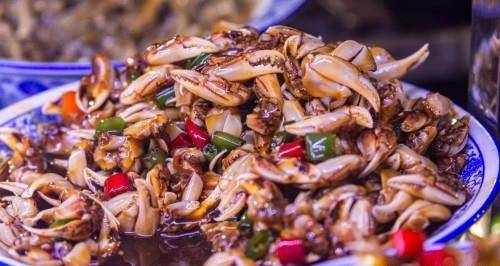 作为一个临海城市,作为青岛当地人常来的美食街,台东路上最不可错过的还是得数各种海鲜,大个头的螃蟹、鲜美的鱿鱼、肥美的大虾应有尽有,就连凉拌的海蜇皮,都比内陆城市吃着要清脆许多;特别推荐这里的螃蟹,辣炒之后摆在外面,买上一份边走边吃,享受!还有一种做法就是螃蟹的大钳子拿来烧开,咬开之后里面的肉超级美,也是不可错过的好东西。